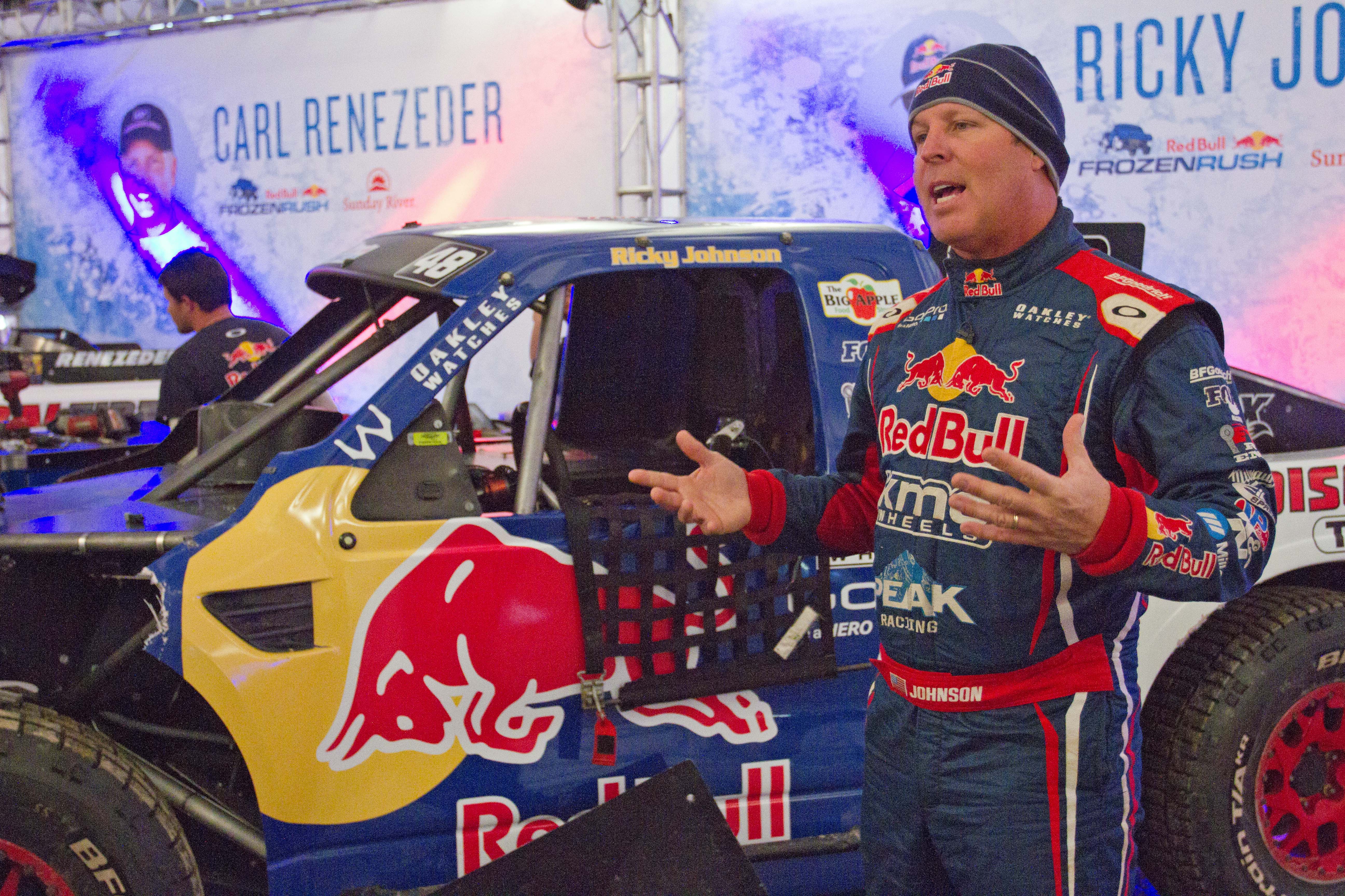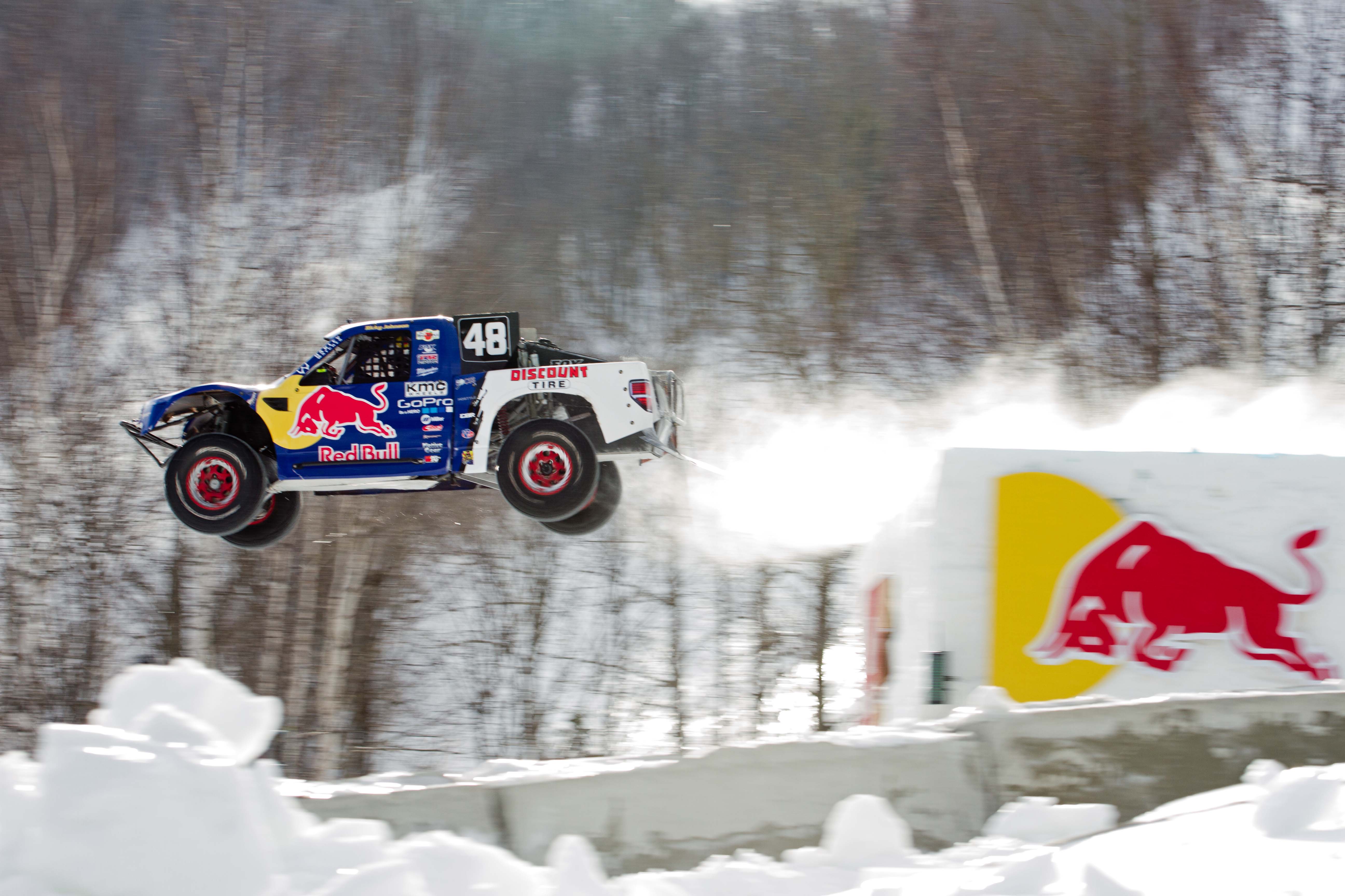 IN BRIEF: On Friday, Sunday River Resort in Newry, ME hosted Red Bull Frozen Rush, an unprecedented event in which eight drivers took 900-horsepower Pro 4 trucks to the ski slopes. After debuting his Pro 4 truck on the snow in a one-off demonstration run last year, Ricky Johnson earned the victory over longtime rival Johnny Greaves.