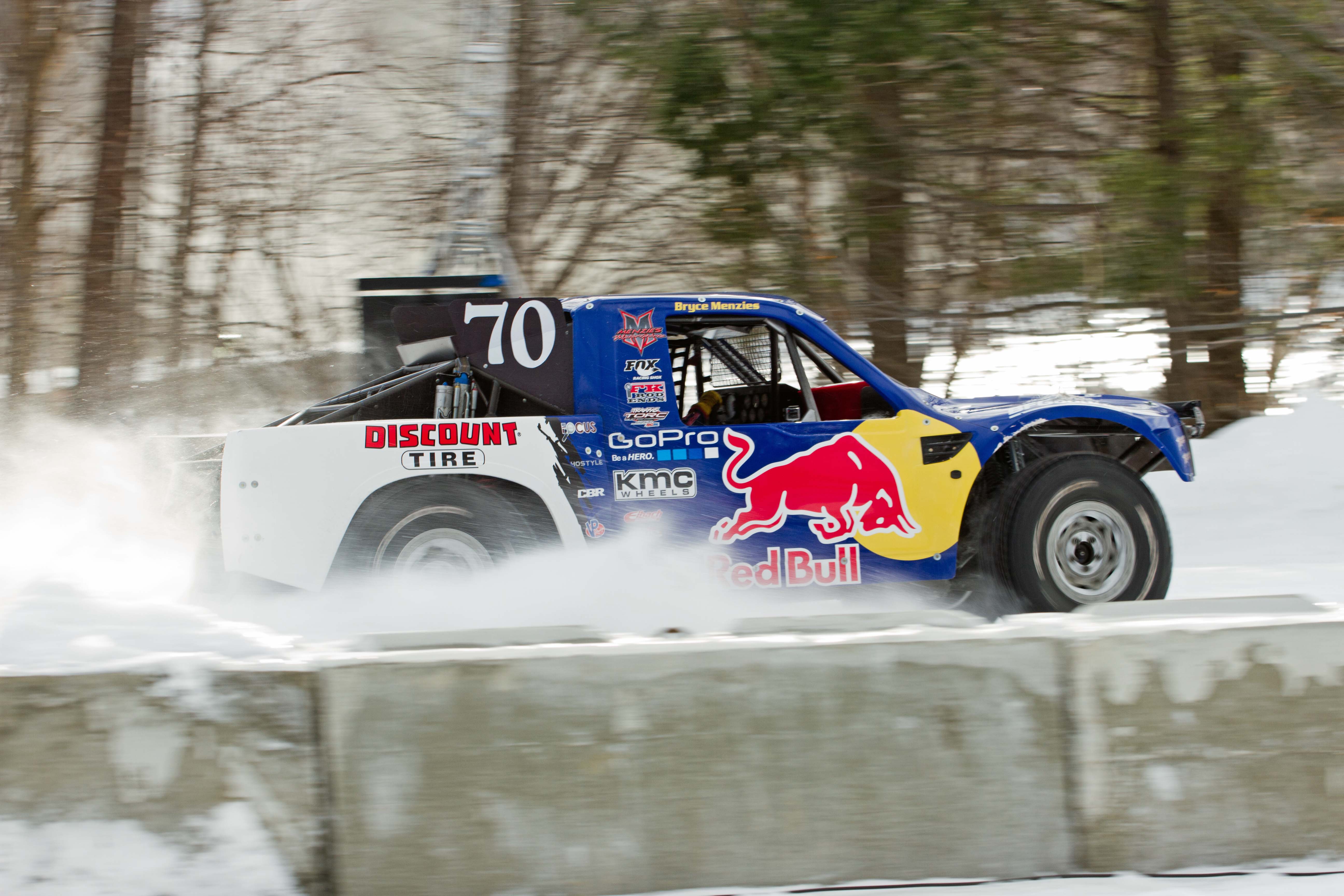 Bryce Menzies was the man to beat in Wednesday’s practice sessions for Red Bull Frozen Rush, posting the fastest lap time in all three practice sessions. Driving the #7 Menzies Motorsports Ford, the Las Vegas native posted a fastest lap time of 40.700 seconds in the second practice.